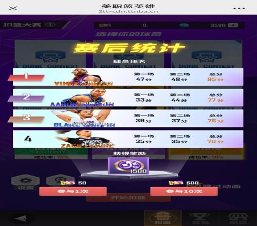 掃碼進入游戲-活動-即可參與扣籃大賽贏巔峰教練